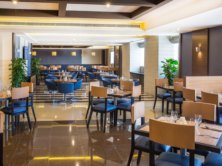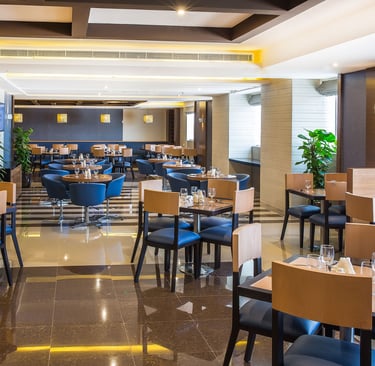 Delights Restaurant provides informal, all-day dining with dramatic mountain views and a live cooking station—adding a touch of theatre and a sense of spectacle to the dining experience. Comfortable and modern, the 24-hour Delights restaurant serves international and continental cuisine. The restaurant features a mix of chairs and benches, ensuring a cozy dining experience. The menu is a meticulously chosen selection of international favorites, combining hot and cold dishes into one mouthwatering menu.